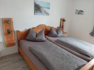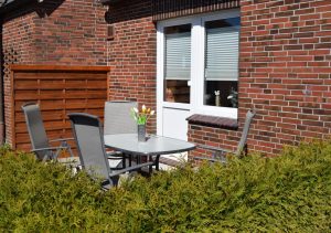 Unsere Wohnung im Erdgeschoss ist ca. 70 m² groß, eignet sich für 2- 4 Personen und verfügt über eine Wohnküche mit Küchenzeile und Essbereich, 2 Schlafzimmer und 1 Badezimmer. Ein Schlafzimmer und die Wohnküche sind mit Fernsehern ausgestattet. Zur Wohnung gehört eine eigene, großzügige Terrasse an der Südseite des Hauses und eine Holzhütte als sicherer Unterstand für Ihre Fahrräder.